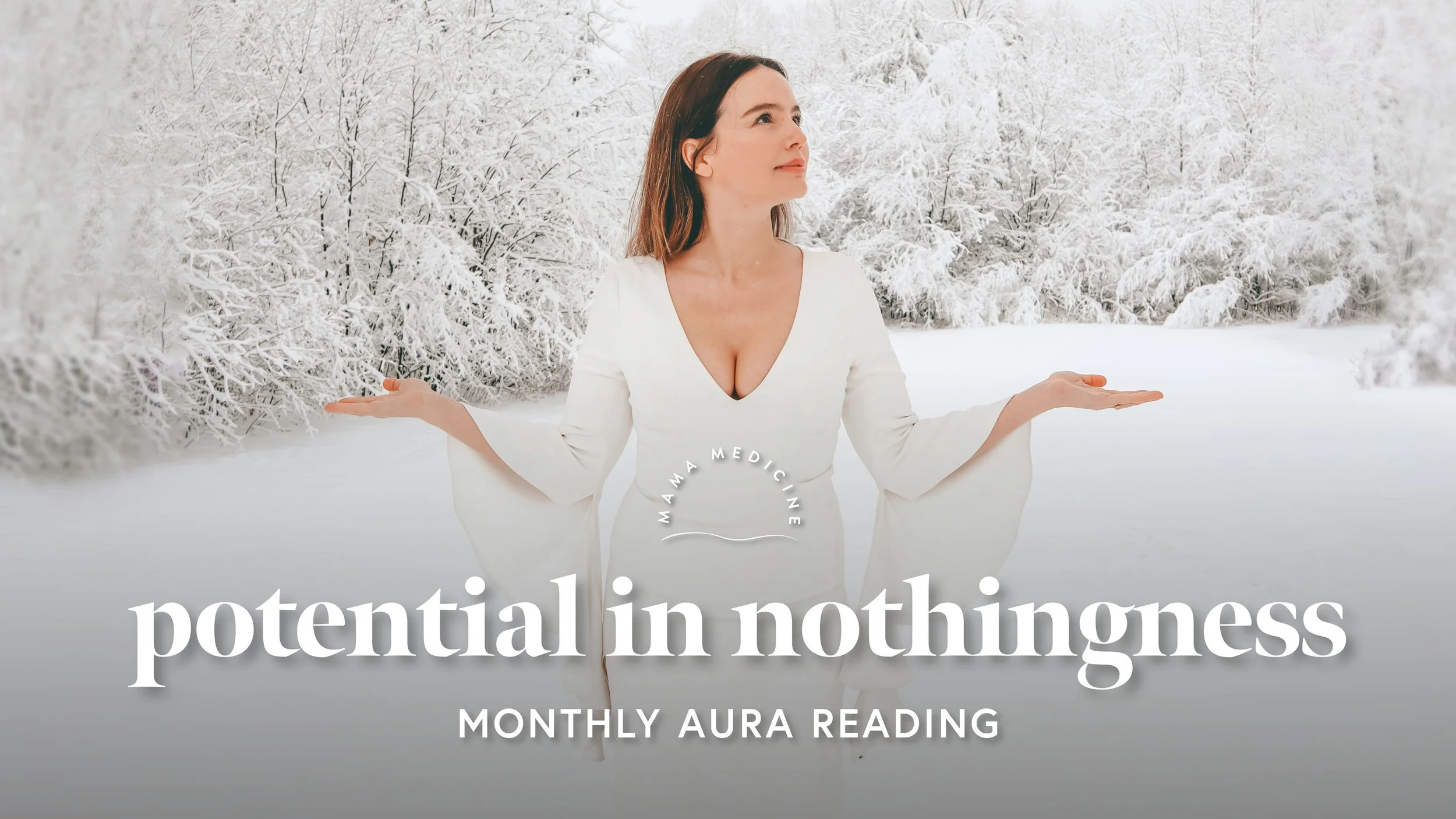 Welcome to beautiful 2023. The theme of this whole year is Integration. We've done a lot of work. We've done a lot of healing. We've gone deep down into the shadow. We've done a lot of clearing, and so for the beginning of this year, the theme being Integration and just taking time to integrate all the healing work that we've done. Integrate who we once were with who we are now. Integrate all the practices that we've engaged in... For the beginning of this year of integration, I want to bring forward the theme of the pure Potential in Nothingness. I'm coming to you from the North country and it's just beautiful stillness and darkness, and yet there's light everywhere with the reflection of the stars on the snow and the moon on the snow and the sun in its soft pink snow-filled sky hue, and in this time of winter, there's a silence that is just quite inviting and encouraging. And I think that the seasons and the Earth, they give us this energy of silence for us to be able to begin to feel the potential in nothingness, for us to begin to feel the potential in stillness, even to feel the potential in aloneness. I think that we naturally run away from the feeling of nothing. We run away from the feeling of stillness and silence. Perhaps because it feels too close to death for us. And if we're always running, we're always busying ourselves, we're always consuming more and more and more, perhaps then we feel a little bit less alone. Perhaps then we feel a little bit further away from the death that we are guaranteed for. Birth and death and life are things that we go into alone, and so maybe we spend so much time on a screen because it helps us to feel less alone. But I think if you're in a place of feeling a little bit uninspired, if you're in a place of feeling a bit alone, if you're in a place of feeling that silence and stillness that comes with winter, rather than running away from it, I want to encourage you to lean into it, to go into it. Because there, in these spaces that are uncomfortable for us, there is pure potential. Before life sprang up from the Great Mystery, perhaps there was silence. Perhaps there was nothing. Perhaps there was stillness. Perhaps there was darkness. But in that silence and stillness and darkness, there was the pure potential for everything to become what it is. Nature encourages us to go into these places so we can feel that energy of pure potential, like going deep within the silence and darkness of the womb or the caves that are surrounding this beautiful Mother Earth. So to begin this year of Integration, I want to encourage you to just start with silence and nothingness. Let's sit together just for a moment here. Go ahead and close your eyes. Take a few deep breaths. And allow yourself to just rest in silence, stillness, and the pure potential of the darkness that lies behind your closed eyes. May this year bring forward all the wishes of your pure heart. Blessed be.