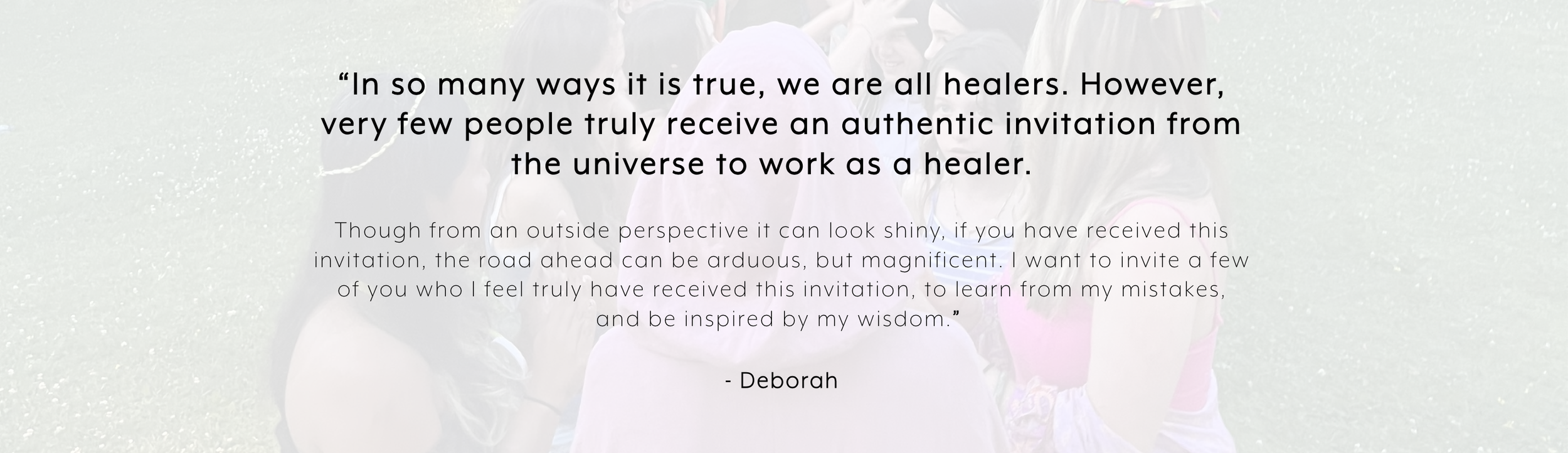 This program is designed for a select few folks who feel their Original Essence wants to be expressed through a healing/creative offering and would like to cultivate their gifts with the guidance of Deborah’s approachable depth of wisdom.